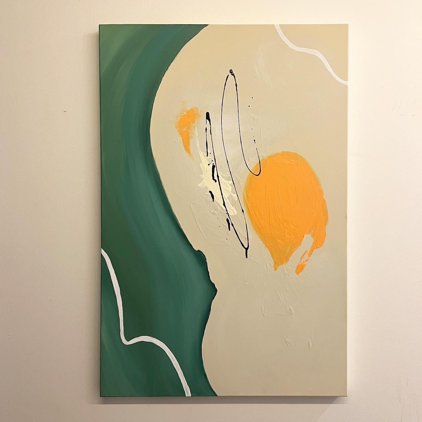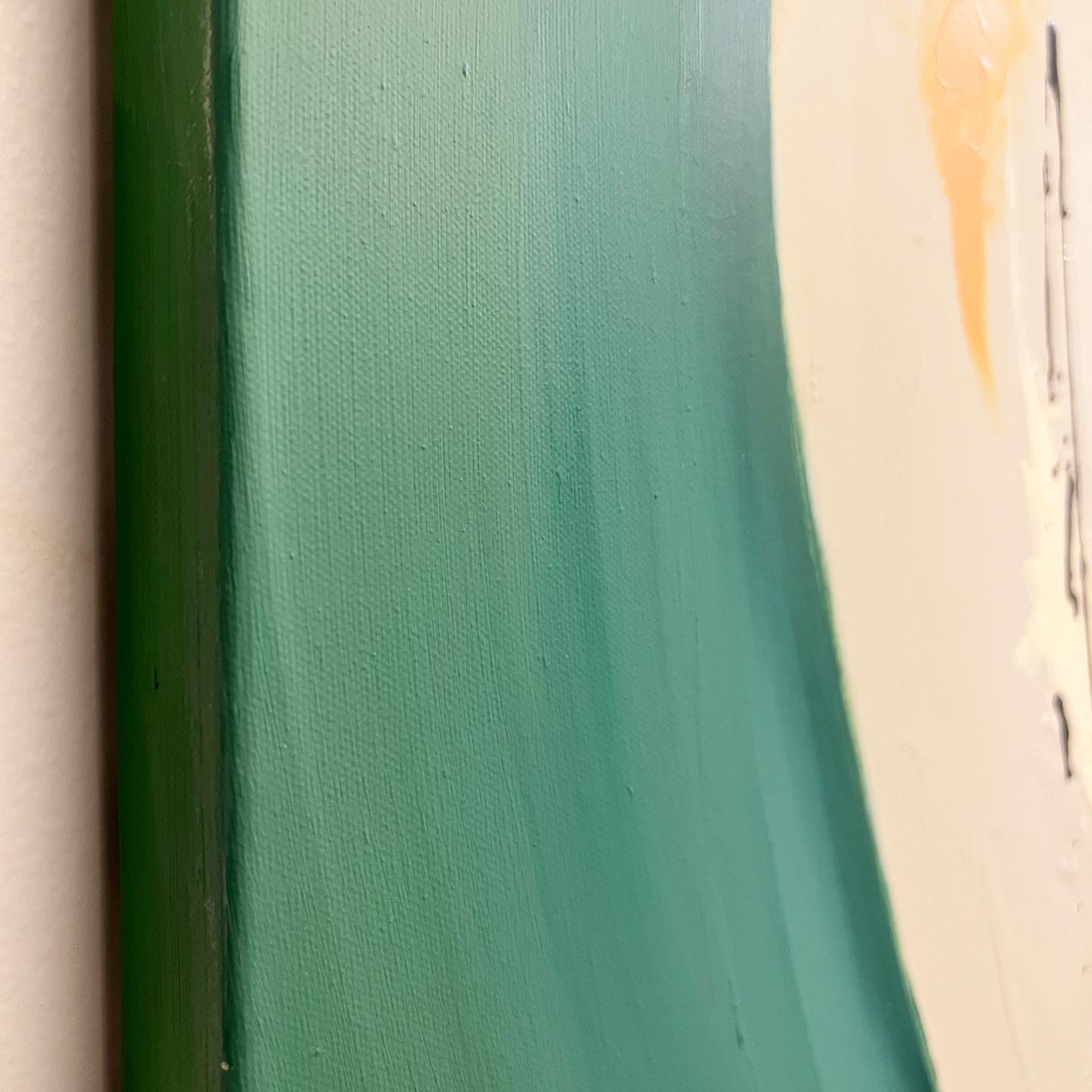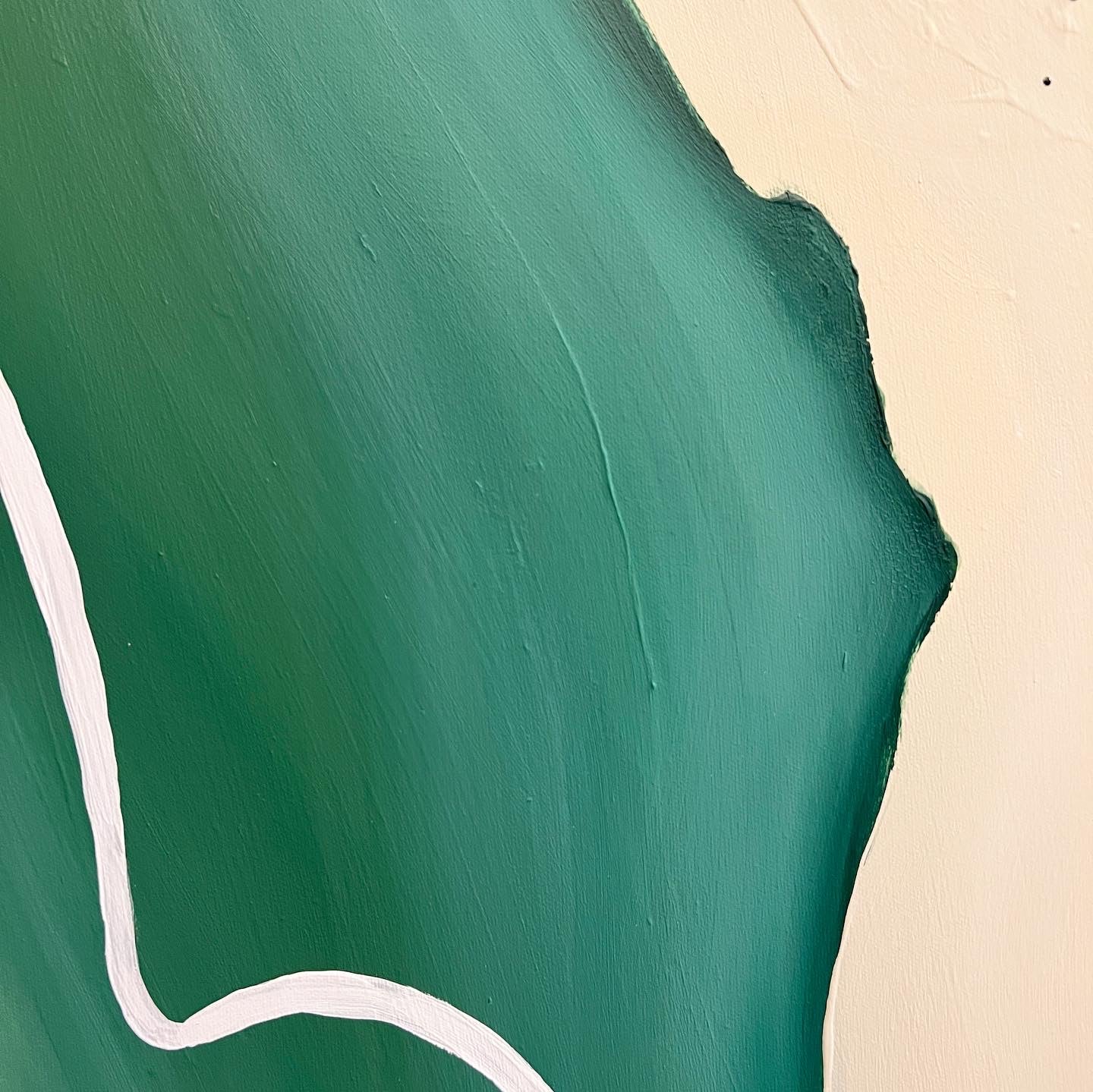 I love this green so much. It’s very emerald, a muted blue melted and brushed with white titanium. It’s textured and has many layers. Will come wrapped, and ready to hang. It’s pretty light, and two thumb tacks will do just fine.