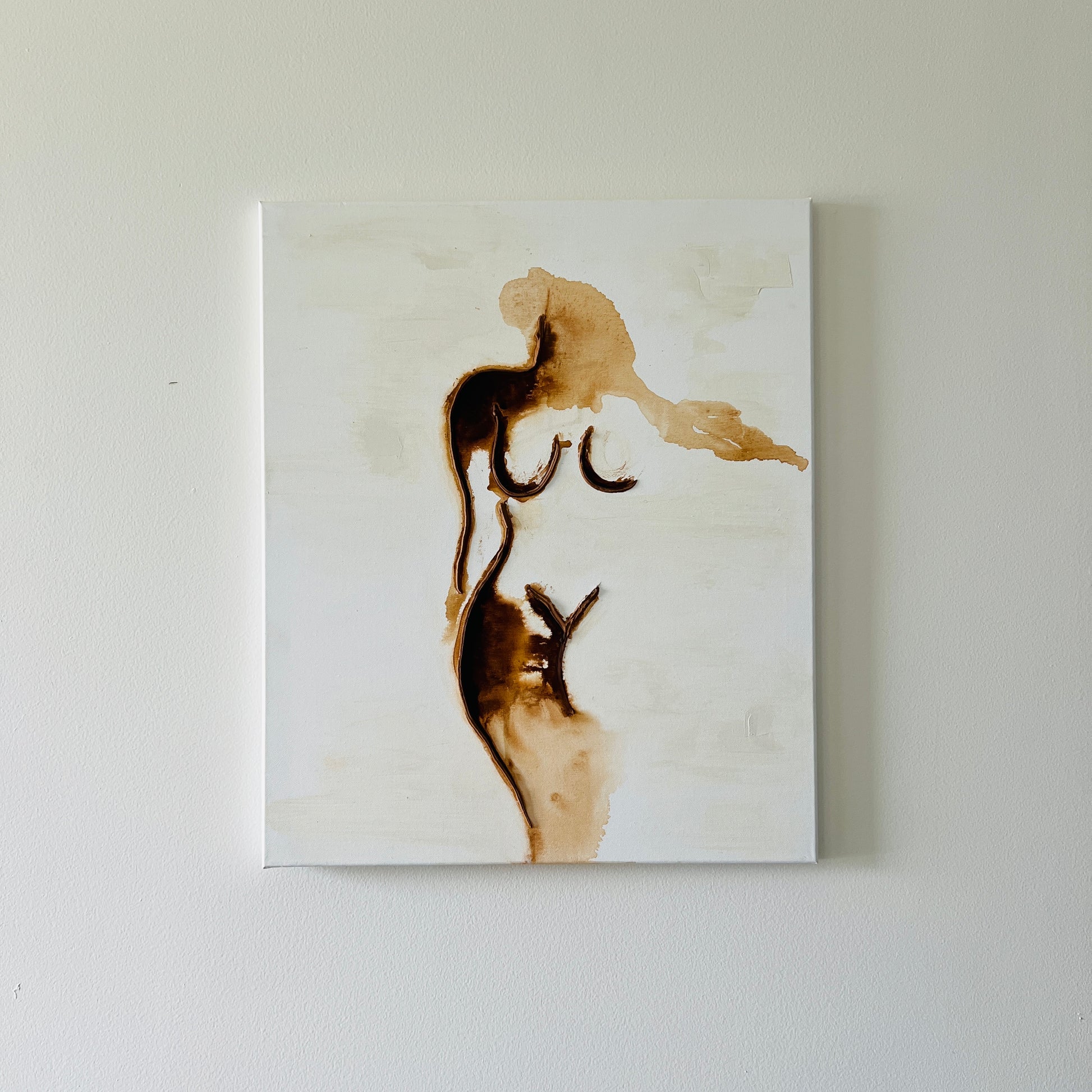Title inspired by "007", a bold body art piece ready to hang! Size 20x24. Perfect statement piece for a pamper room, bedroom, and/or gallery. Mixed Media on Museum Wrapped Canvas. Hand-picked installation nails included.