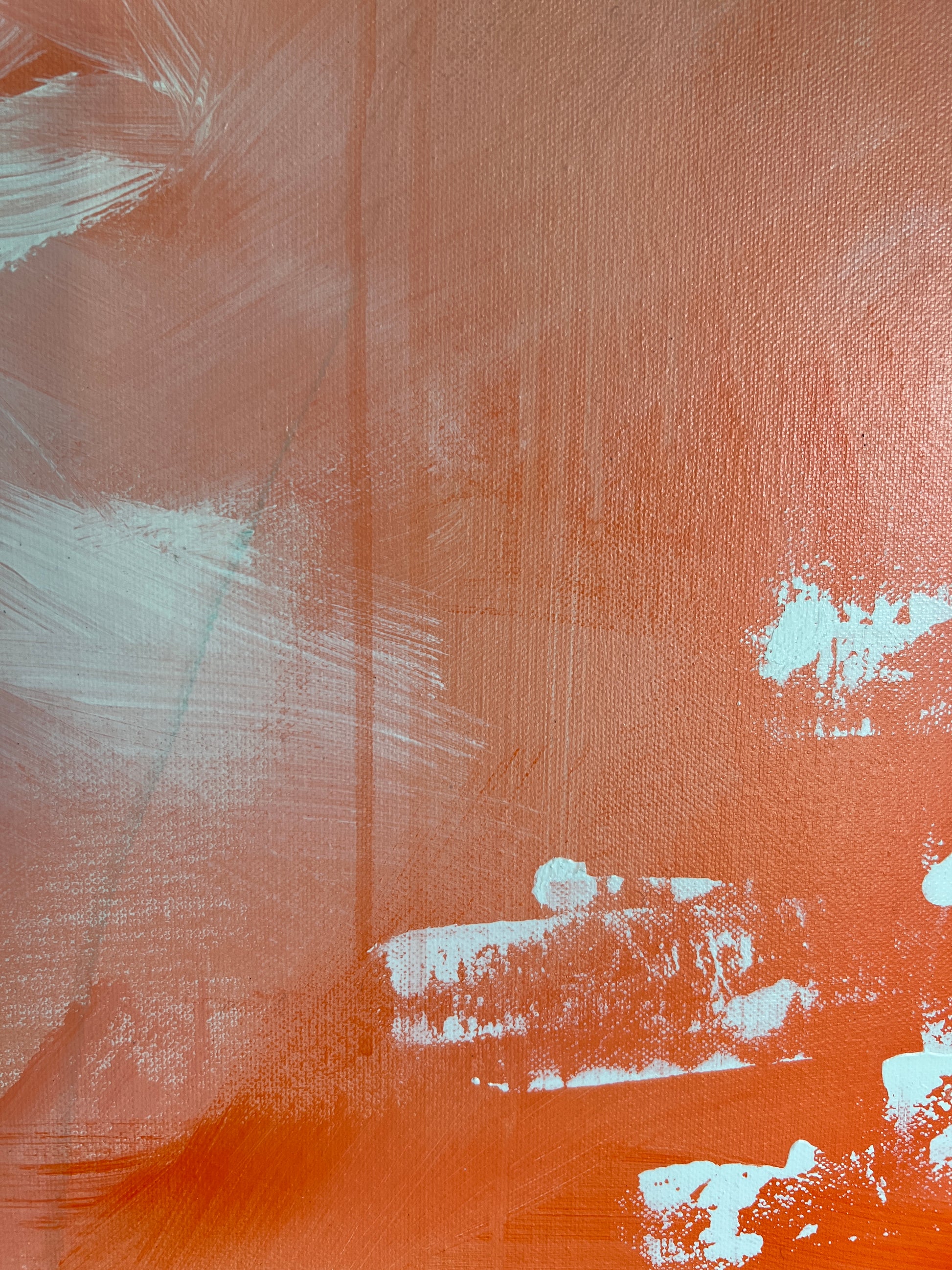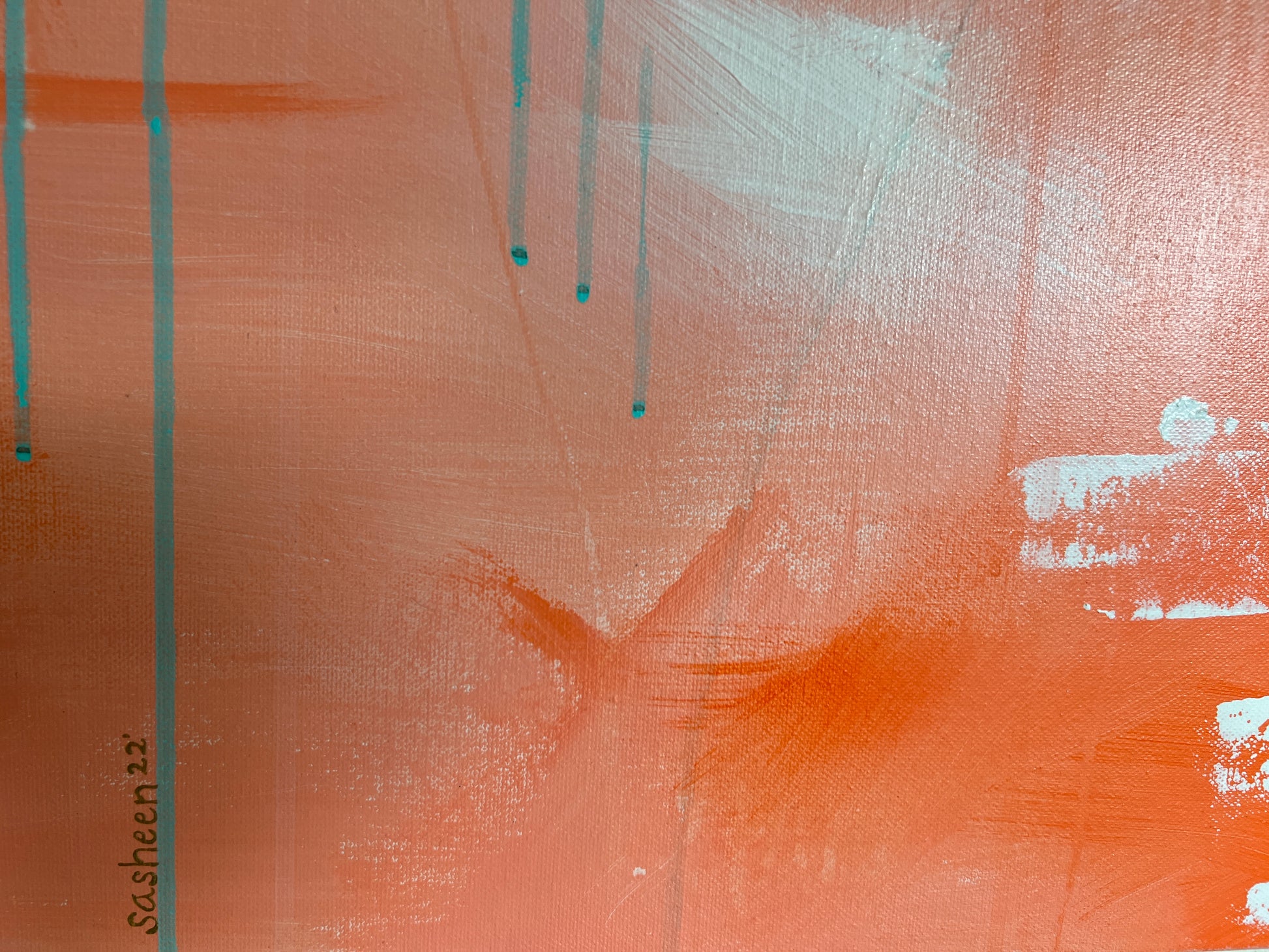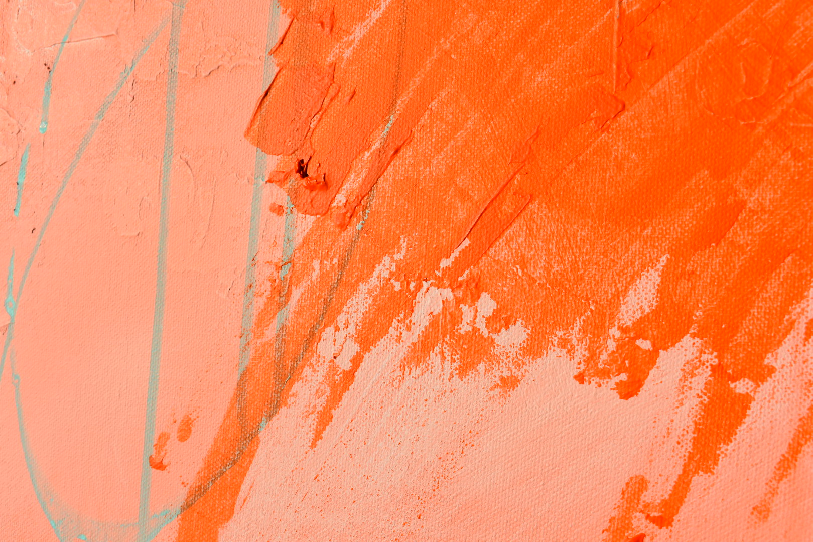 Bright abstract art piece! Size 36x36, thin edge. Perfect statement piece for a living or bedroom. Acrylic on Museum Wrapped Canvas.